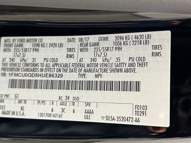 - VIN : 1FMCU0GD5HUE86329