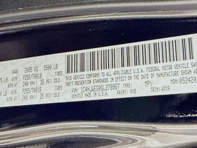 - VIN : 1C4HJWEG0GL279967