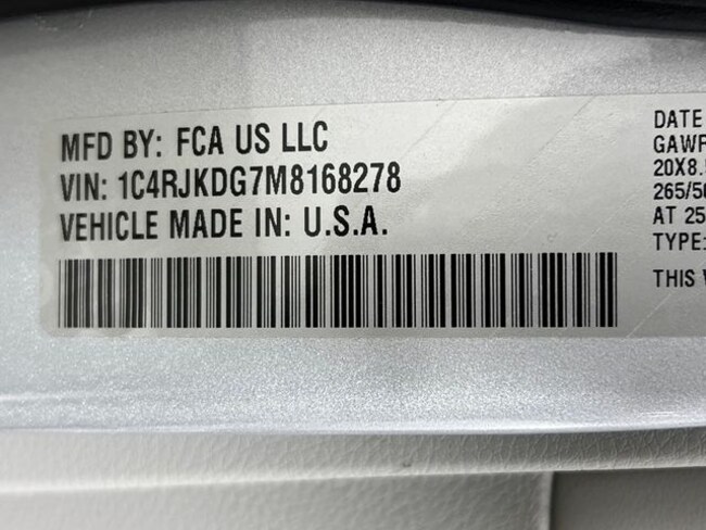 - VIN : 1C4RJKDG7M8168278