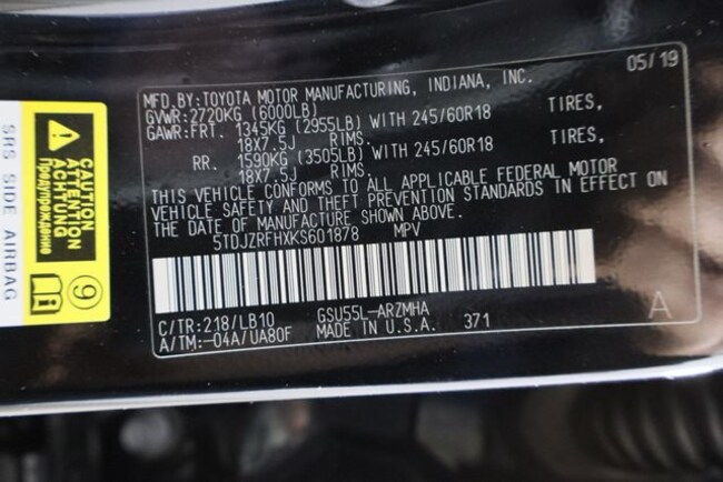 - VIN : 5TDJZRFHXKS601878
