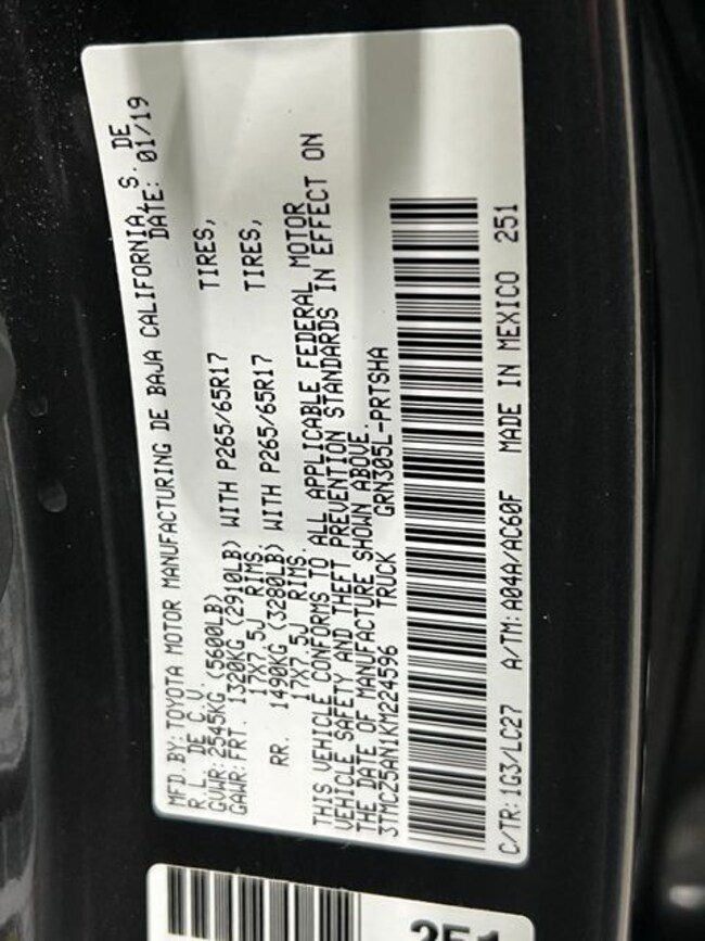 - VIN : 3TMCZ5AN1KM224596