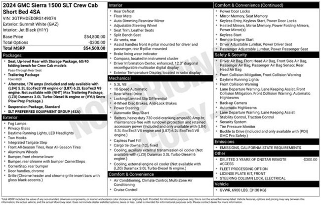 - Exterior Color : Summit White Interior Color : BLACK
