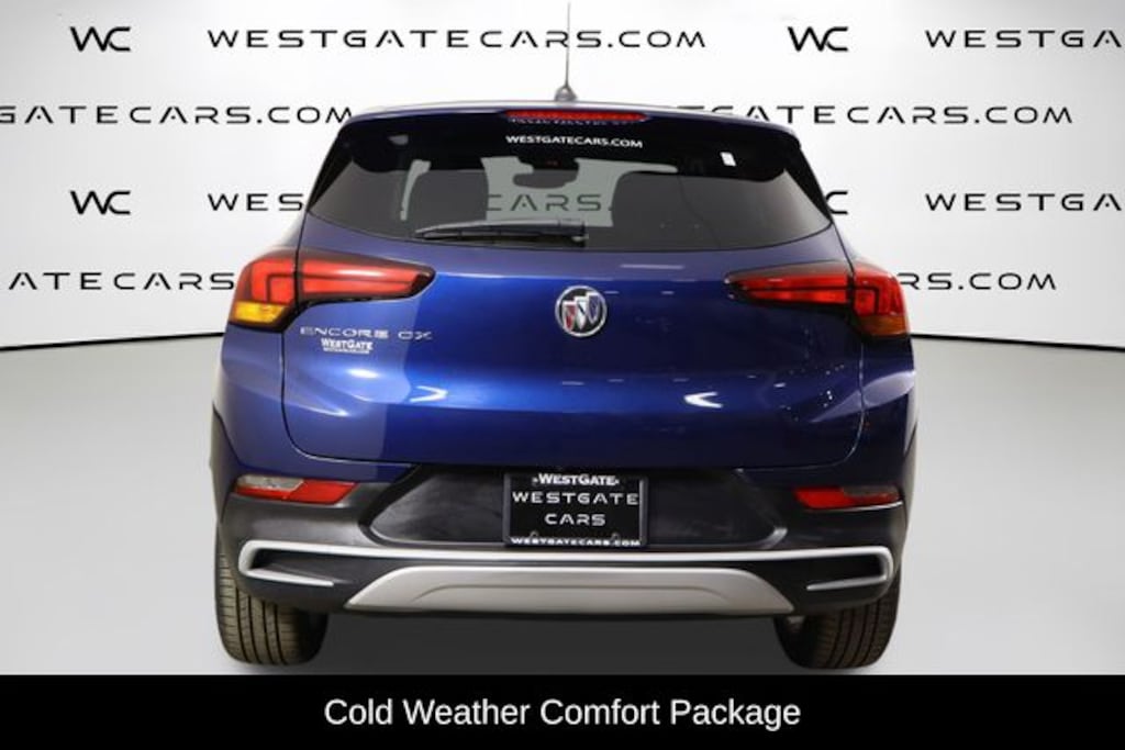 The Cold Weather Comfort Package takes the Encore GX's convenience to the next level, providing a heated steering wheel, heated front seats, and a remote start system to ensure a warm and comfortable ride, even on the chilliest mornings. The Sapphire Metallic Blue exterior paint adds a touch of elegance, while the 18-inch bright silver painted aluminum wheels enhance the vehicle's sleek, modern appearance.