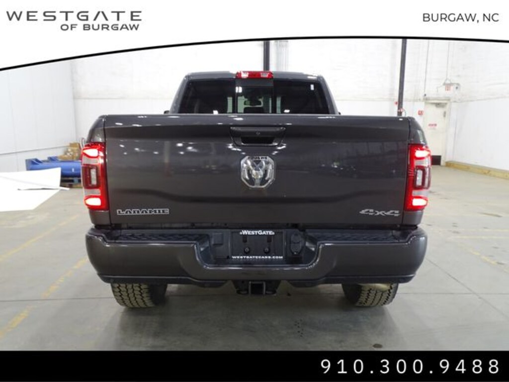 10 Speakers, 115V Auxiliary Rear Power Outlet, 12" Touchscreen Display, 18" x 8" Polished Aluminum Wheels, 2 Way Rear Headrest Seat, 220 Amp Alternator, 2nd Row In Floor Storage Bins, 3.73 Axle Ratio, 4 Way Front Headrests, 4-Wheel Disc Brakes, 4G LTE Wi-Fi Hot Spot, 5th Wheel/Gooseneck Towing Prep Group, 8.4" Touchscreen Display, ABS brakes, Active Noise Control System, Air Conditioning, Alexa Built-In, Alloy wheels, AM/FM radio: SiriusXM with 360L, Apple CarPlay, Apple CarPlay/Android Auto, Auto Adjust In Reverse Exterior Mirrors, Auto Dimming Exterior Passenger Mirror, Auto High Beam Headlamp Control, Auto Power-Folding Mirrors, Auto-Dimming Exterior Mirrors, Auto-dimming Rear-View mirror, Automatic temperature control, Blind Spot & Cross Path Detection, Brake assist, Bumpers: body-color, Center Hub, Chrome Exterior Mirrors, Clearance Lamps, Compass, Connected Travel & Traffic Services, Connectivity - US/Canada, Delay-off headlights, Disassociated Touchscreen Display, Driver door bin, Driver vanity mirror, Dual front impact airbags, Dual front side impact airbags, Electronic Stability Control, Electronically Controlled Throttle, Exterior Mirrors Courtesy Lamps, Exterior Mirrors w/Heating Element, Exterior Mirrors w/Memory, Exterior Mirrors w/Supplemental Signals, Foam Bottle Insert (Door Trim Panel), Folding Flat Load Floor Storage, For Details Visit DriveUconnect.com, For More Info, Call 800-643-2112, Forward & Reverse Utility Lights, Front anti-roll bar, Front Center Armrest w/Storage, Front dual zone A/C, Front LED Fog Lamps, Front License Plate Bracket, Front reading lights, Front Seat Back Map Pockets, Fully automatic headlights, Garage door transmitter, Global Telematics Box Module (TBM), Google Android Auto, GPS Antenna Input, GPS Navigation, HD Radio, Heated door mirrors, Heated Front Seats, Heated front seats, Heated Steering Wheel, Heated steering wheel, High Back Seats, Illuminated entry, Integrated Center Stack Radio, Integrated Voice Command w/Bluetooth, Laramie Level 1 Equipment Group, Leather steering wheel, Leather Trim 40/20/40 Bench Seat, LED Reflector Headlamps, LED Tail Lamps, Low tire pressure warning, Mirror Running Lights, MOPAR Spray In Bedliner, Navigation System, Occupant sensing airbag, Off-Road Information Pages, Outside temperature display, Overhead airbag, Overhead console, Panic alarm, ParkSense Front/Rear Park Assist System, ParkView Rear Back-Up Camera, Passenger door bin, Passenger vanity mirror, Power 8-Way Adjustable Passenger Seat, Power Adjust 8-Way Driver Seat, Power Adjust Mirrors, Power Adjustable Pedals w/Memory, Power door mirrors, Power driver seat, Power Heat Fold Memory Telescopic Mirrors, Power passenger seat, Power steering, Power Telescoping Mirrors, Power windows, Power-Adjustable Convex Aux Mirrors, Quick Order Package 2HH Laramie, Radio data system, Radio: Uconnect 5 Nav w/12.0" Display, Radio: Uconnect 5 Nav w/8.4" Display, Rain Sensitive Windshield Wipers, Rear 60/40 Folding Seat, Rear Power Sliding Window, Rear reading lights, Rear seat center armrest, Rear step bumper, Rear Window Defroster, Remote keyless entry, Remote Tailgate Release, Security system, Selectable Tire Fill Alert, SiriusXM Radio Service, SiriusXM w/360L, Speed control, Split folding rear seat, Steering wheel mounted audio controls, Tachometer, Tilt steering wheel, Tip Start, Traction control, Trailer Tow Pages, Trip computer, Turn signal indicator mirrors, Variably intermittent wipers, Voltmeter, Wheels: 18" x 8.0" Polished Aluminum.